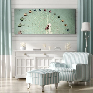 Impression sur toile - Image sur toile - Une grande roue colorée contre un ciel bleu dans un style rétro - 50x70cm - Nous vous invitons à vous amuser - Décoration murale moderne pour le salon et la chambre ARTTOR