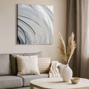 - Un tourbillon monochrome aux nuances de gris et de noir, parfait pour les intérieurs minimalistes. L'abstraction subtile ajoute dynamisme et élégance.