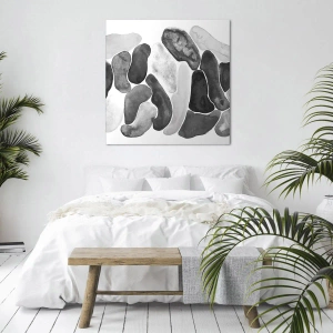 Impression sur toile - Image sur toile - Abstraction en noir et blanc avec des taches irrégulières sur fond blanc - 50x70cm - Abstraction rocheuse - Décoration murale moderne pour le salon et la chambre ARTTOR