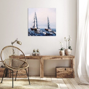 - Voiliers sur une mer agitée, présentés dans une composition picturale. Une décoration parfaite pour les amateurs de paysages marins et d'art.