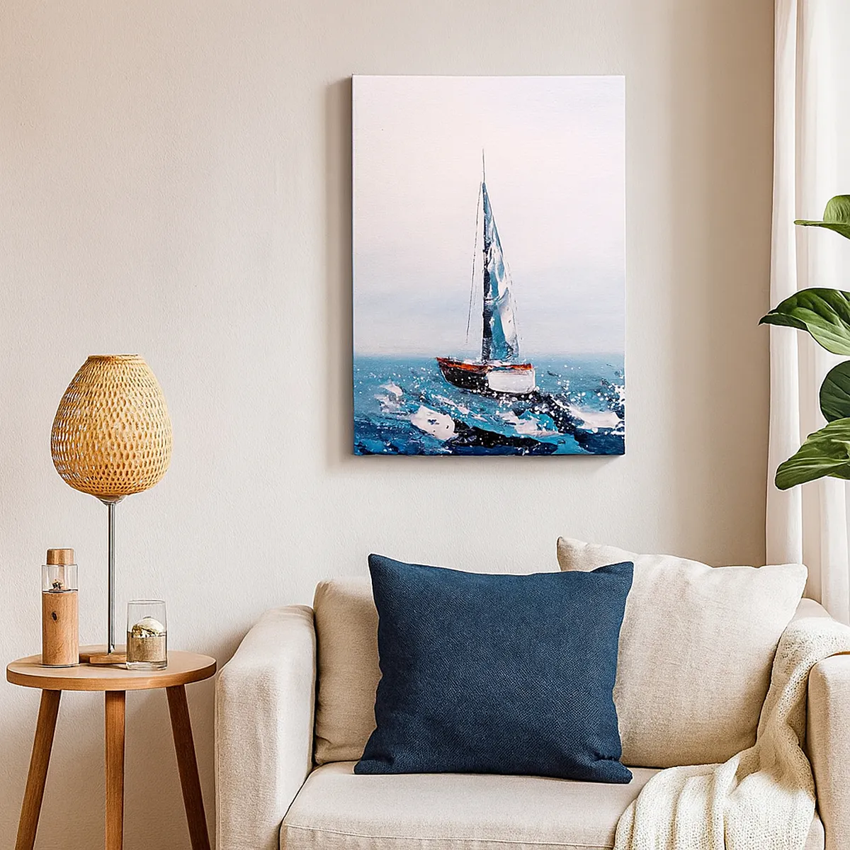 Impression sur toile - Image sur toile - Voiliers sur une mer agitée dans une composition picturale - 50x70cm - Confrérie du vent - Décoration murale moderne pour le salon et la chambre ARTTOR