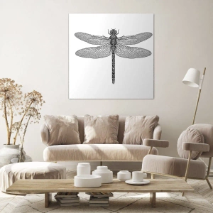 Impression sur toile - Image sur toile - Dessin noir et blanc d'une libellule sur fond blanc dans un style minimaliste - 80x120cm - Précision de la nature - Décoration murale moderne pour le salon et la chambre ARTTOR