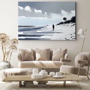 Impression sur toile - Image sur toile - Une silhouette solitaire marchant sur une plage déserte - 160x50cm - Seul à seul - Décoration murale moderne pour le salon et la chambre ARTTOR