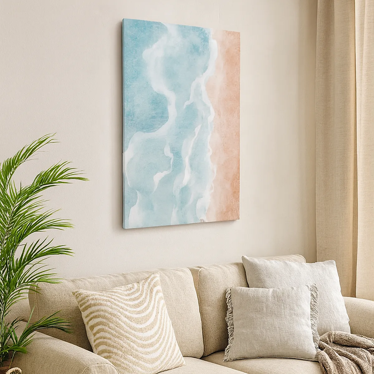 Impression sur toile - Image sur toile - Plage abstraite avec des vagues dans les tons bleus et beiges - 50x70cm - Abstraction du nuage - Décoration murale moderne pour le salon et la chambre ARTTOR