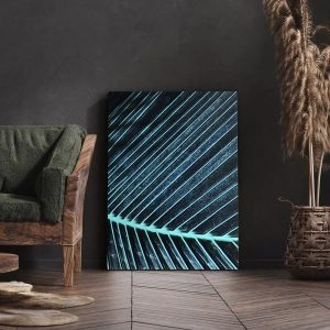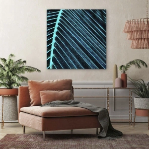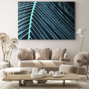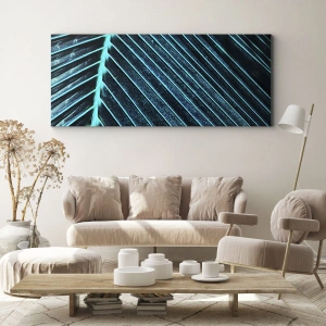 Impression sur toile - Image sur toile - Macrophotographie d'une feuille dans les tons turquoise et bleu marine - 160x50cm - Texture verte - Décoration murale moderne pour le salon et la chambre ARTTOR