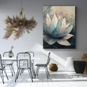 Impression sur toile - Image sur toile - De subtils nénuphars aux tons pastel de bleu et d'or - 100x70cm - Les étoiles du lac - Décoration murale moderne pour le salon et la chambre ARTTOR