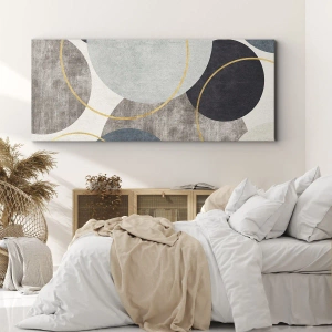 Impression sur toile - Image sur toile - Cercles géométriques dans les tons de gris, bleu et or - 80x120cm - Cercles sur cercles - Décoration murale moderne pour le salon et la chambre ARTTOR