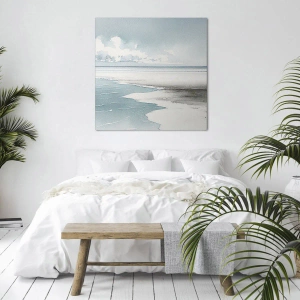 Impression sur toile - Image sur toile - Une mer calme et une plage aux tons clairs de bleu - 120x50cm - Marée douce - Décoration murale moderne pour le salon et la chambre ARTTOR