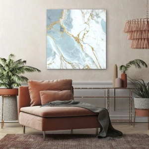 Impression sur toile - Image sur toile - Motifs en marbre bleu et blanc avec des veines dorées ajoutées - 120x50cm - Richesse en pierre - Décoration murale moderne pour le salon et la chambre ARTTOR