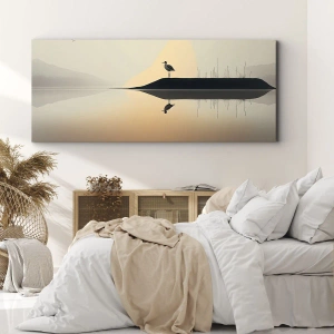 Impression sur toile - Image sur toile - Un oiseau sur une île dans un lac calme aux teintes chaudes - 140x50cm - Le seigneur du lac - Décoration murale moderne pour le salon et la chambre ARTTOR