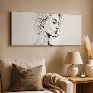 - Ce tableau représente un délicat portrait de femme dans un style graphique minimaliste. C'est la décoration idéale pour apporter harmonie et élégance à tout intérieur.