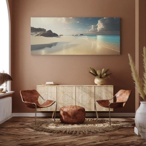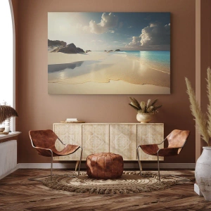L'impression sur toile « Jour de rêve » représente une vue pittoresque d'une plage ensoleillée, où les eaux bleues enveloppent le sable fin et où les charmants rochers ajoutent un caractère unique au paysage. Cette composition séduit par son harmonie de couleurs et de lumière, qui apporte une atmosphère de détente estivale et de paix à votre intérieur.