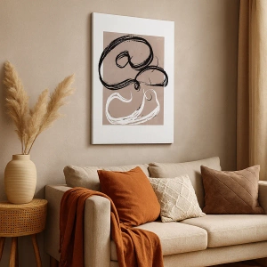 Impression sur toile - Image sur toile - Abstraction en noir et blanc sur fond beige - 70x100cm - Composition – la recherche de la plénitude - Décoration murale moderne pour le salon et la chambre ARTTOR