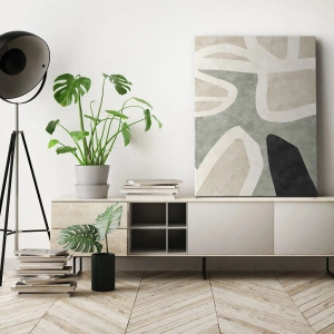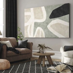 Impression sur toile - Image sur toile - Formes abstraites aux couleurs tamisées - 70x100cm - Composition pour motif noir - Décoration murale moderne pour le salon et la chambre ARTTOR