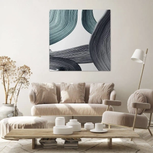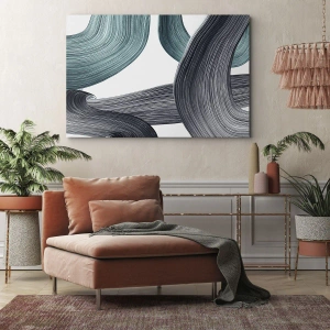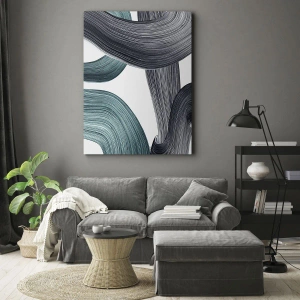 Impression sur toile - Image sur toile - Lignes abstraites fluides dans des tons de vert et de gris - 80x120cm - Sentiers émeraude et noirs - Décoration murale moderne pour le salon et la chambre ARTTOR