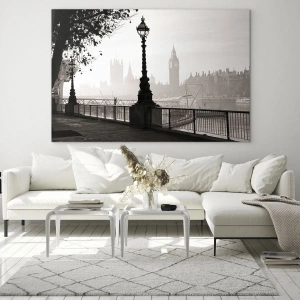 Décoration murale - London Morning - Photographie noir et blanc de la promenade londonienne avec Big Ben