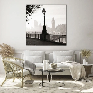 Le tableau « London Morning » est une photographie d'art atmosphérique qui transporte le spectateur au cœur du paysage paisible en noir et blanc de la capitale britannique. Au premier plan s'étend une promenade ombragée, offrant une vue sur le légendaire Big Ben et la skyline londonienne légèrement embrumée. Le lampadaire et les balustrades en fonte ajoutent du charme et un caractère classique à la scène. L'ensemble est préservé dans la douce lumière matinale, qui estompe délicatement les contours des bâtiments et apporte un sentiment de paix. Cette vue peut être interprétée comme une métaphore du début – d'un nouveau jour, de nouvelles pensées et de moments rien que pour soi. Le tableau respire la paix et la tranquillité, offrant un répit visuel loin de l'agitation du quotidien.