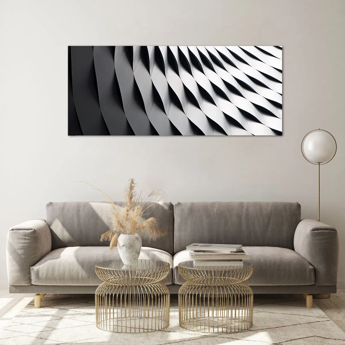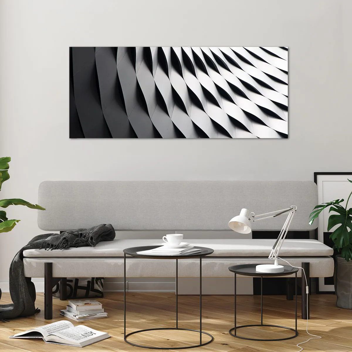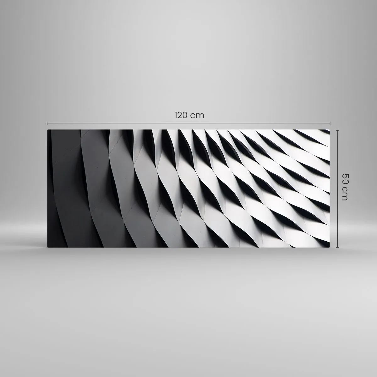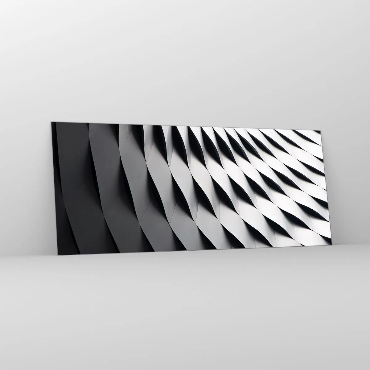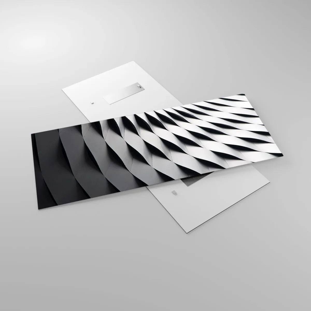 Impression sur verre - Image sur verre - Motif géométrique abstrait dans des tons de noir et blanc - 120x50cm - A la surface des vagues - Décoration murale moderne pour le salon et la chambre ARTTOR