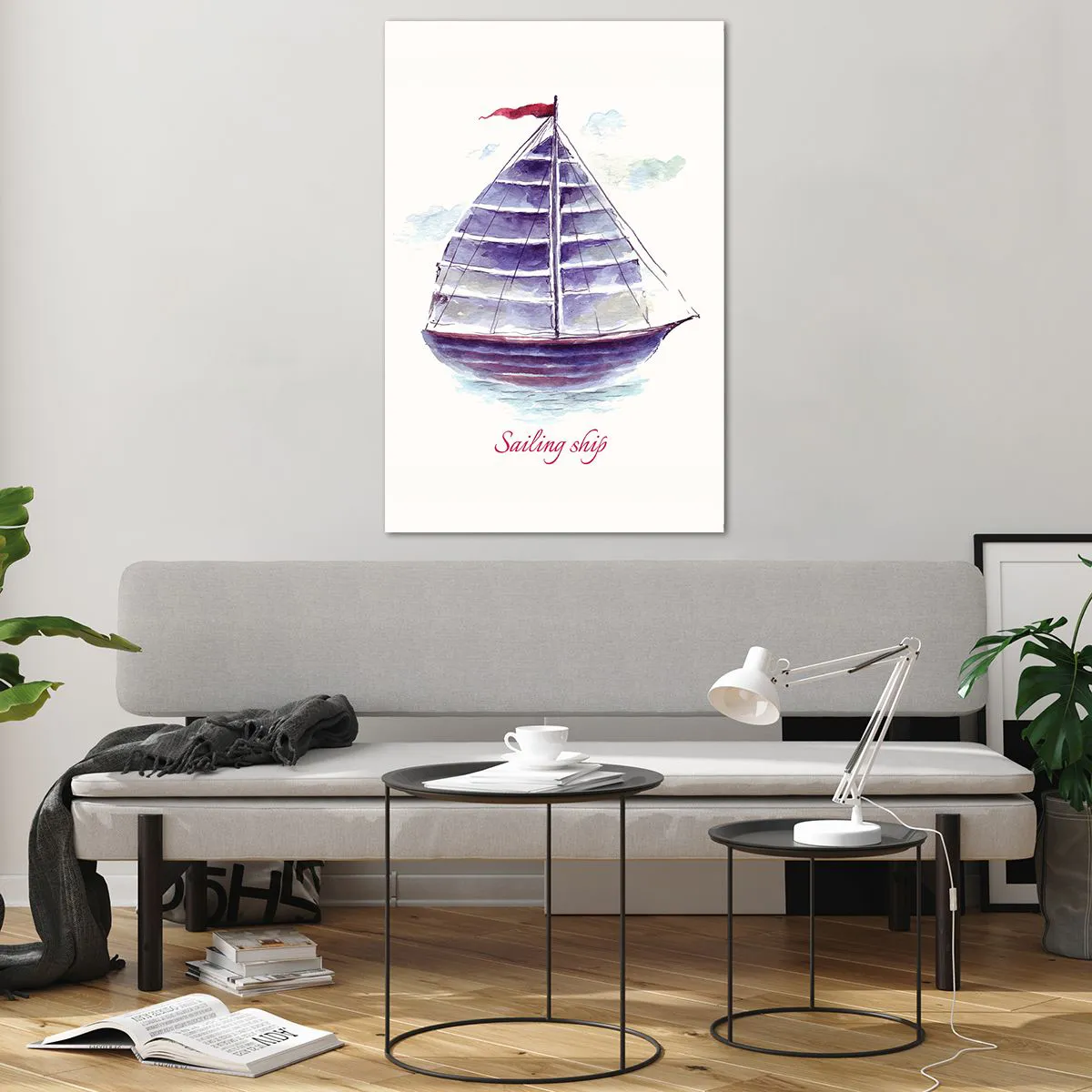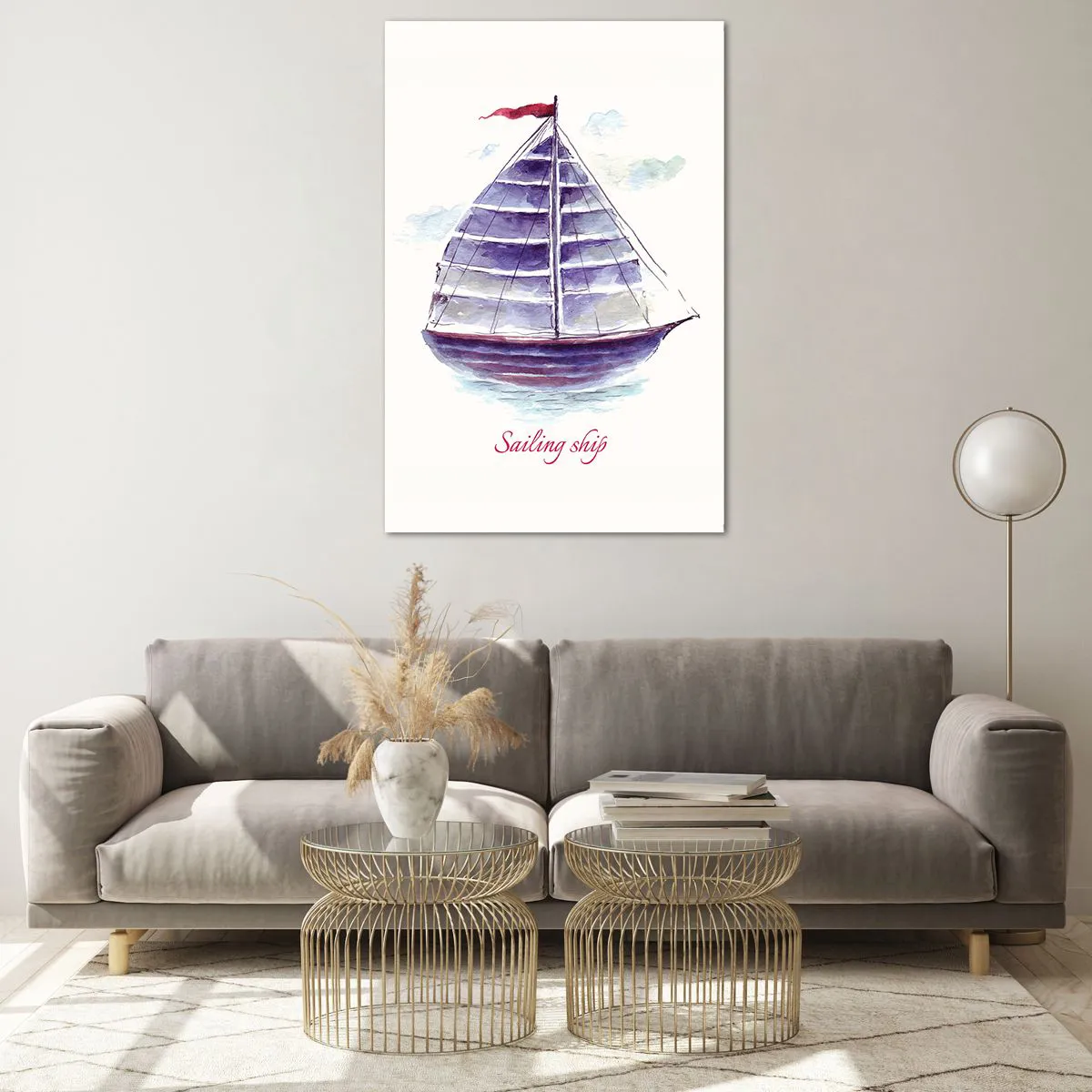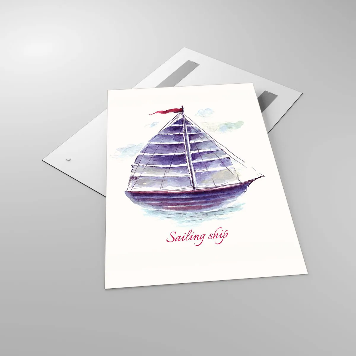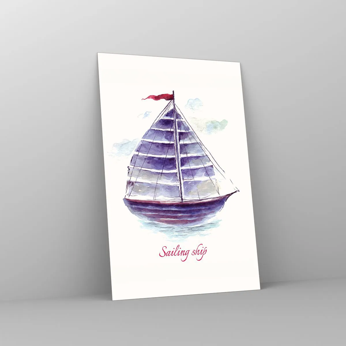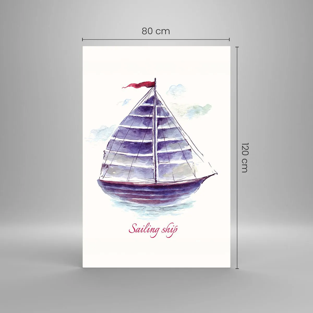 Impression sur verre - Image sur verre - Une aquarelle représentant un voilier sur l'eau avec une inscription délicate - 80x120cm - Plein de voiles et d’eau calme - Décoration murale moderne pour le salon et la chambre ARTTOR