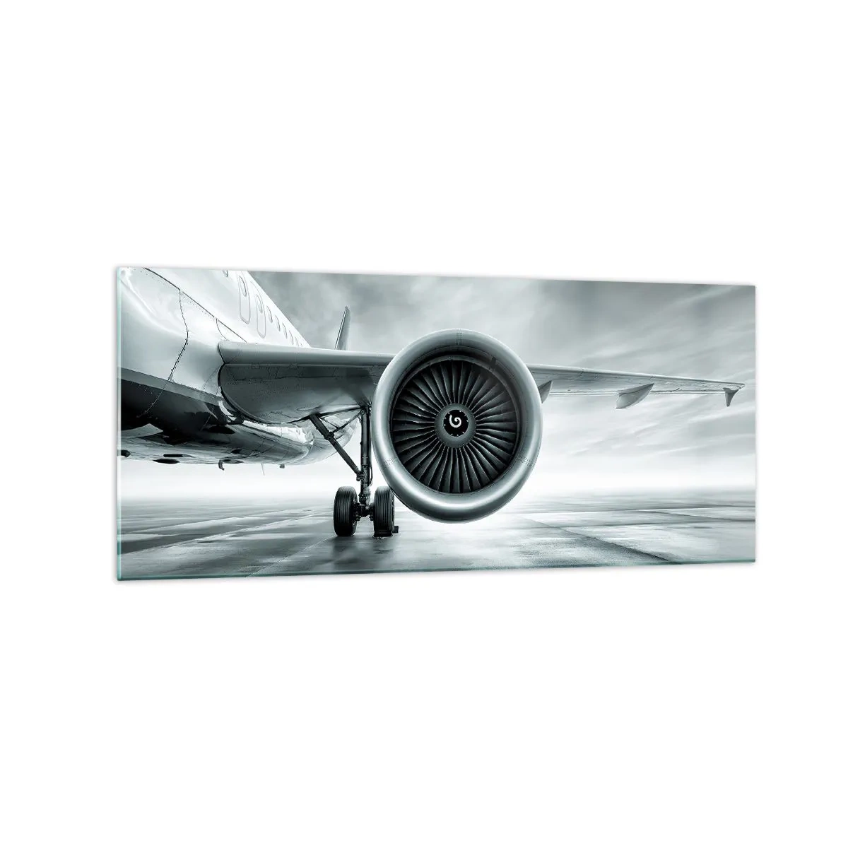 Impression sur verre - Image sur verre - Le réacteur d'un avion sur le tarmac - 120x50cm - Sent la force! - Décoration murale moderne pour le salon et la chambre ARTTOR