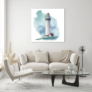 Impression sur verre - Image sur verre - Un phare contre un ciel bleu aquarelle - 50x70cm - La douce sœur du bleu - Décoration murale moderne pour le salon et la chambre ARTTOR