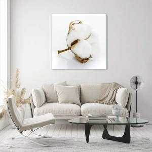 Impression sur verre - Image sur verre - Une branche de coton sur un fond clair dans une approche minimaliste - 70x100cm - Doux par nature - Décoration murale moderne pour le salon et la chambre ARTTOR