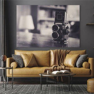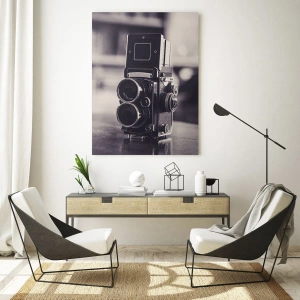 Impression sur verre - Image sur verre - Appareil photo ancien en noir et blanc - 80x120cm - La magie de la photographie ancienne - Décoration murale moderne pour le salon et la chambre ARTTOR