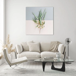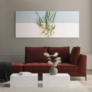 Impression sur verre - Image sur verre - Un brin d'eucalyptus sur fond pastel - 120x80cm - Subtilité pastel - Décoration murale moderne pour le salon et la chambre ARTTOR