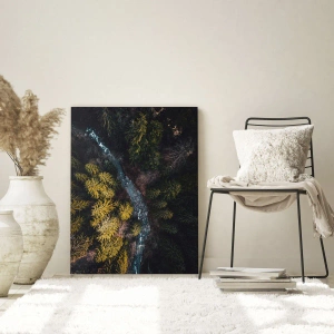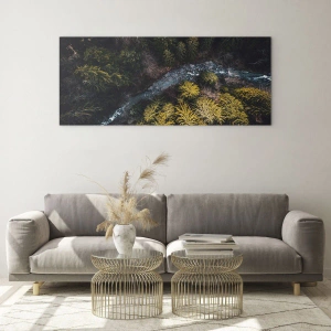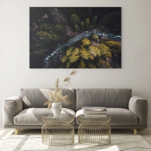 Impression sur verre - Image sur verre - Vue aérienne d'un paysage forestier avec un ruisseau sinueux - 120x80cm - De plus en plus vite - Décoration murale moderne pour le salon et la chambre ARTTOR