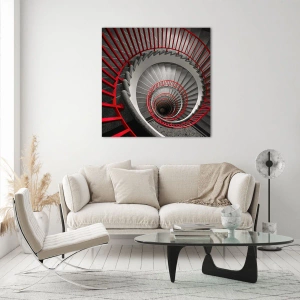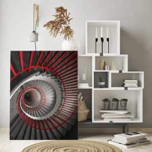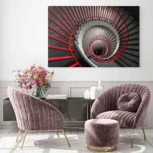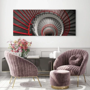 Impression sur verre - Image sur verre - Escalier en colimaçon avec rampes rouges dans une perspective dynamique - 140x50cm - Amusement architectural - Décoration murale moderne pour le salon et la chambre ARTTOR