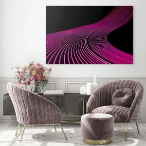 La peinture sur verre est faite sur un verre de 4 mm d'épaisseur. Les bords du verre ont une arête trapézoïdale mate. La tableau est sûr à l'utilisation et prêt à être accroché - il a des crochets en métal attachés à l'arrière du cadre et des entretoises en mousse permettant la régulation uniforme de la distance du tableau au mur.