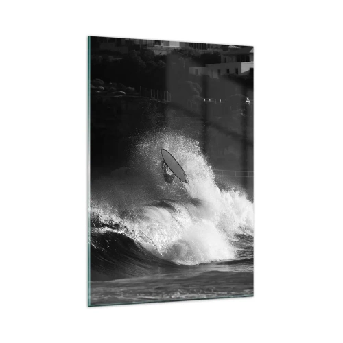 Impression sur verre - Image sur verre - Un surfeur sur une vague en monochrome - 80x120cm - Défi accepté! - Décoration murale moderne pour le salon et la chambre ARTTOR