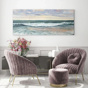 Impression sur verre - Image sur verre - Un tableau représentant des vagues s'écrasant sur le rivage - 50x70cm - Ici tu adouciras ton âme - Décoration murale moderne pour le salon et la chambre ARTTOR