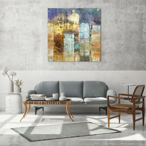 La peinture sur verre est faite sur un verre de 4 mm d'épaisseur. Les bords du verre ont une arête trapézoïdale mate. La tableau est sûr à l'utilisation et prêt à être accroché - il a des crochets en métal attachés à l'arrière du cadre et des entretoises en mousse permettant la régulation uniforme de la distance du tableau au mur.