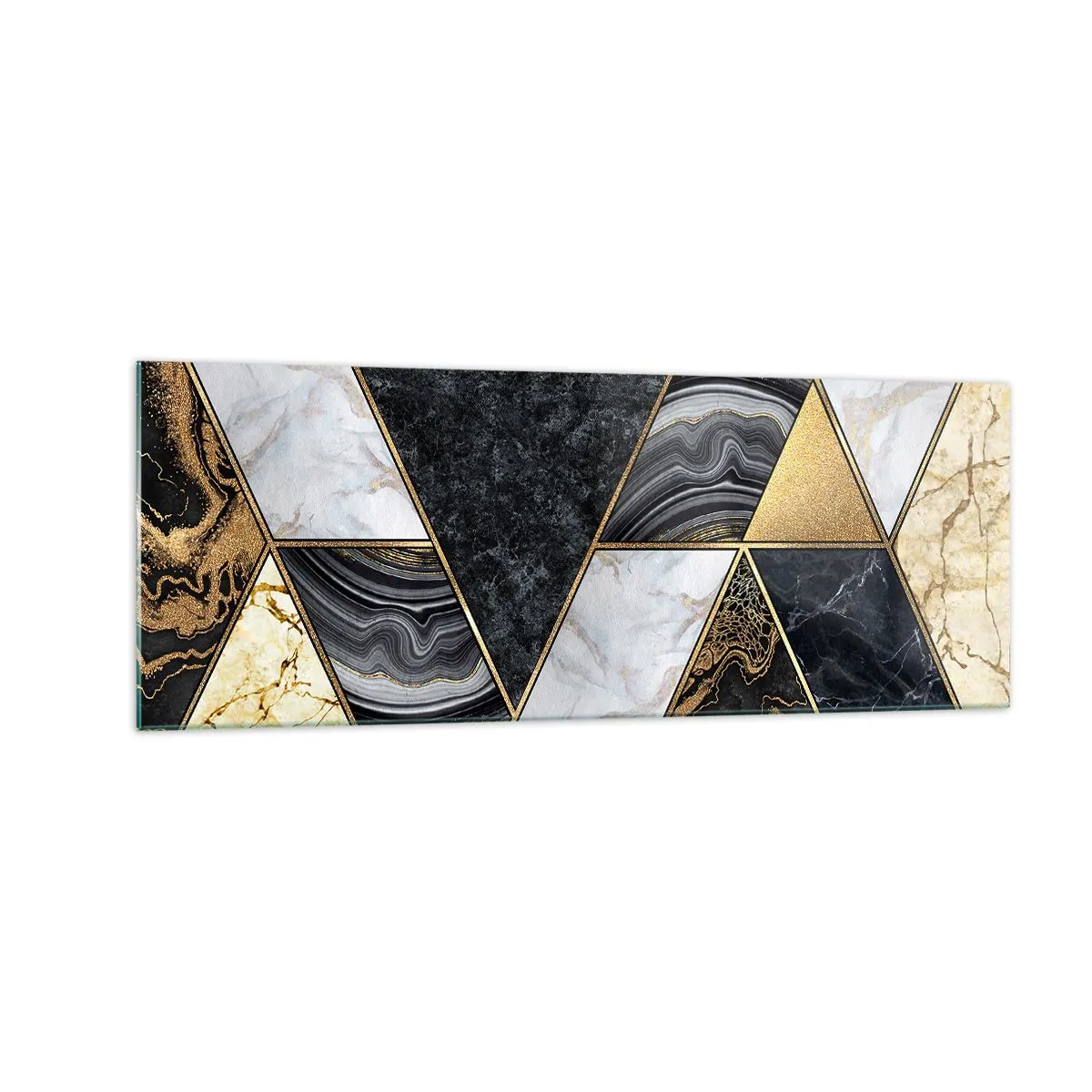 Impression sur verre - Image sur verre - Triangles géométriques en or, marbre et nuances sombres - 140x50cm - Pierre après pierre - Décoration murale moderne pour le salon et la chambre ARTTOR