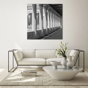 Impression sur verre - Image sur verre - Colonnade de style classique en noir et blanc - 160x50cm - Arcade ensoleillée - Décoration murale moderne pour le salon et la chambre ARTTOR