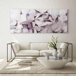 Impression sur verre - Image sur verre - Hortensias rose clair délicats en gros plan - 70x50cm - Dans un flot de fleurs - Décoration murale moderne pour le salon et la chambre ARTTOR