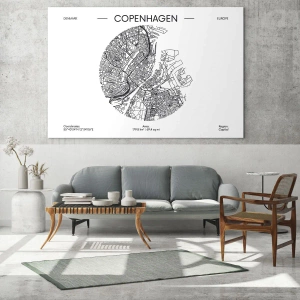 Impression sur verre - Image sur verre - Une carte de Copenhague sous la forme d'un croquis de rue graphique - 100x70cm - Anatomie de Copenhague - Décoration murale moderne pour le salon et la chambre ARTTOR