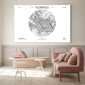 Impression sur verre - Image sur verre - Florence sous la forme d'une carte stylisée avec un réseau de rues - 120x80cm - Anatomie de Florence - Décoration murale moderne pour le salon et la chambre ARTTOR