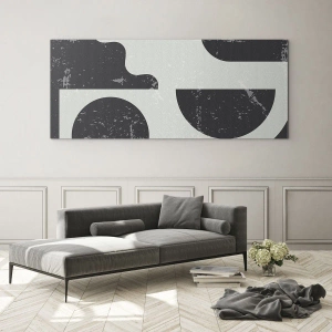 Impression sur verre - Image sur verre - Motifs géométriques dans les tons de noir et de gris - 160x50cm - Composition dessus et dessous - Décoration murale moderne pour le salon et la chambre ARTTOR