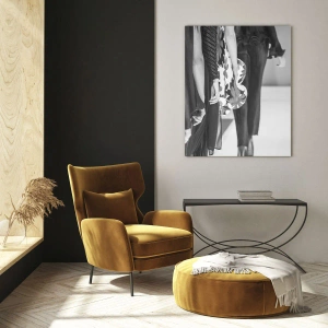 Impression sur verre - Image sur verre - Une scène en noir et blanc d'un défilé de mode avec des mannequins sur le podium. - 70x50cm - Un défilé stylé - Décoration murale moderne pour le salon et la chambre ARTTOR