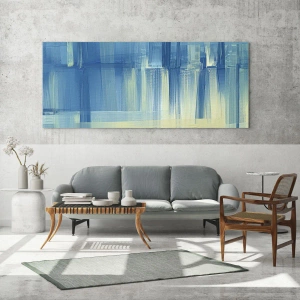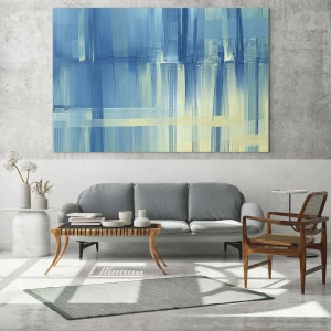 Ce tableau s'intègre parfaitement dans les aménagements modernes, que ce soit dans un salon, un bureau ou un espace de coworking. Il peut servir d'élément central ou de toile de fond subtile. Grâce à ses couleurs universelles, il s'harmonise parfaitement avec les tons intérieurs clairs et neutres.