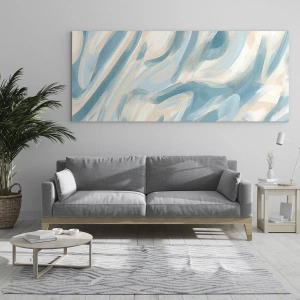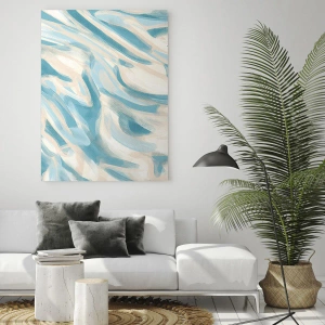 Impression sur verre - Image sur verre - Coups de pinceau abstraits aux couleurs bleues et crème. - 100x70cm - Brise printanière - Décoration murale moderne pour le salon et la chambre ARTTOR