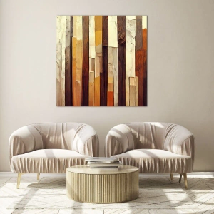 - Une composition moderne aux rayures verticales aux tons bois, beige et marron. Parfait pour les intérieurs rustiques, industriels ou minimalistes, cet imprimé souligne l'atmosphère naturelle de la pièce.