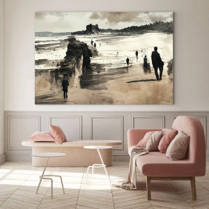 Impression sur verre - Image sur verre - Promeneurs sur la plage dans un paysage paisible - 70x100cm - Invoqué - Décoration murale moderne pour le salon et la chambre ARTTOR