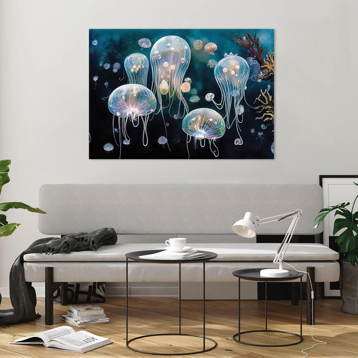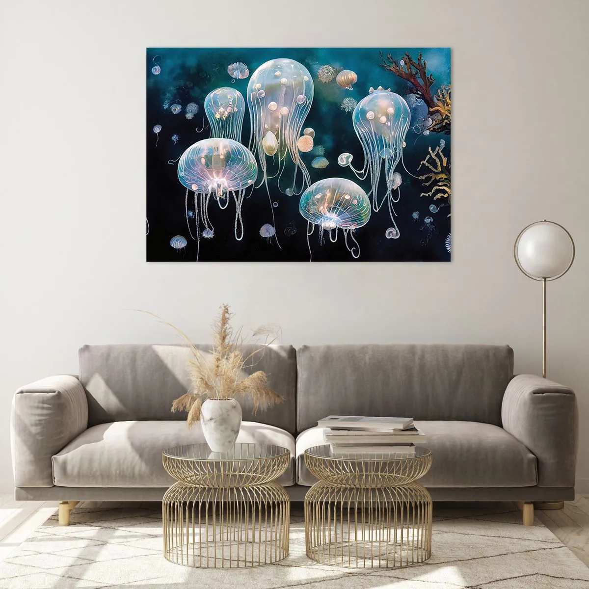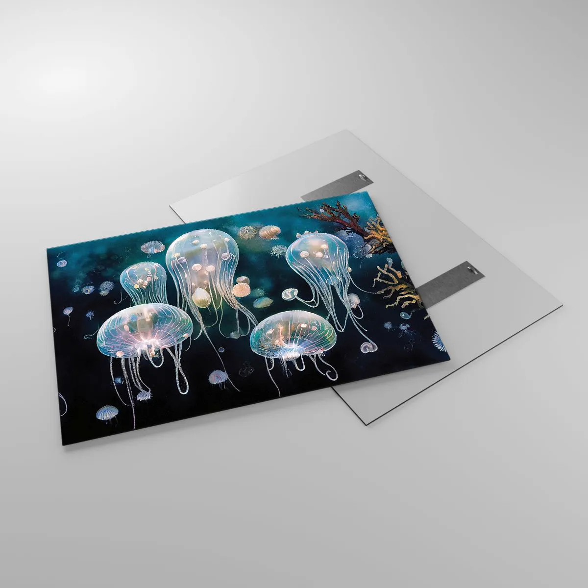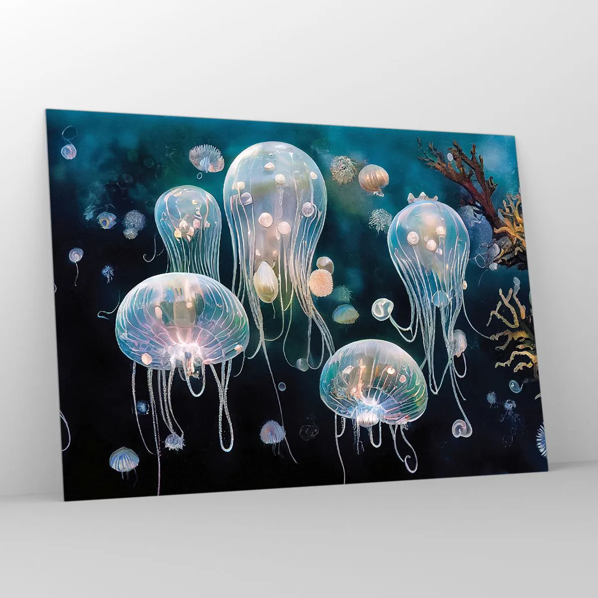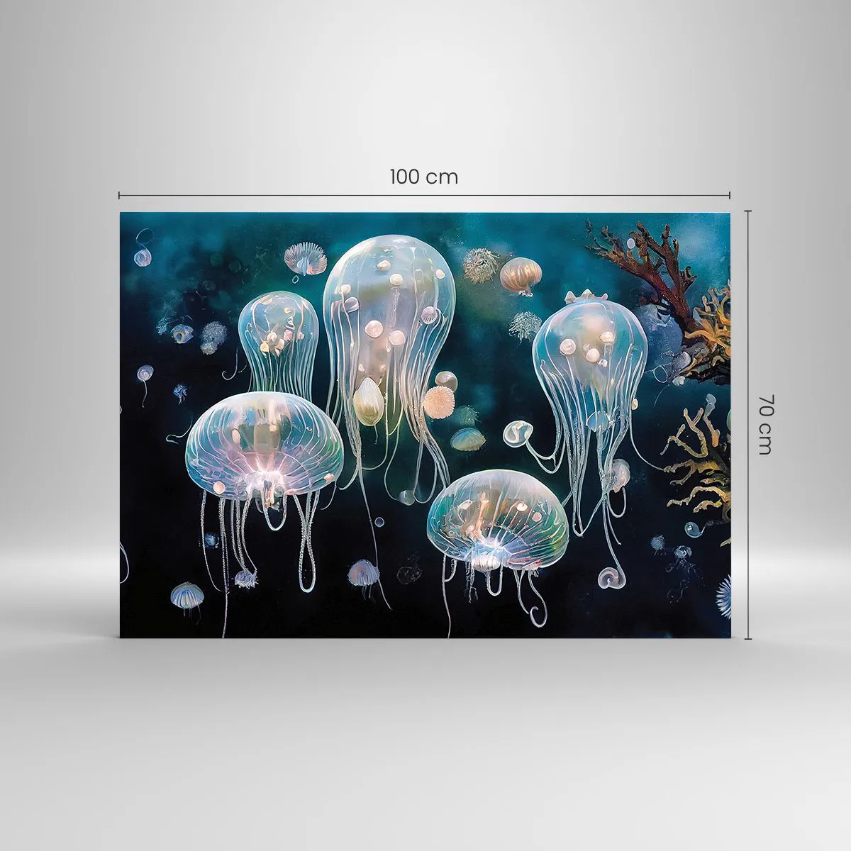Impression sur verre - Image sur verre - Les méduses dans la danse lumineuse du monde sous-marin - 100x70cm - Ballon sous-marin - Décoration murale moderne pour le salon et la chambre ARTTOR