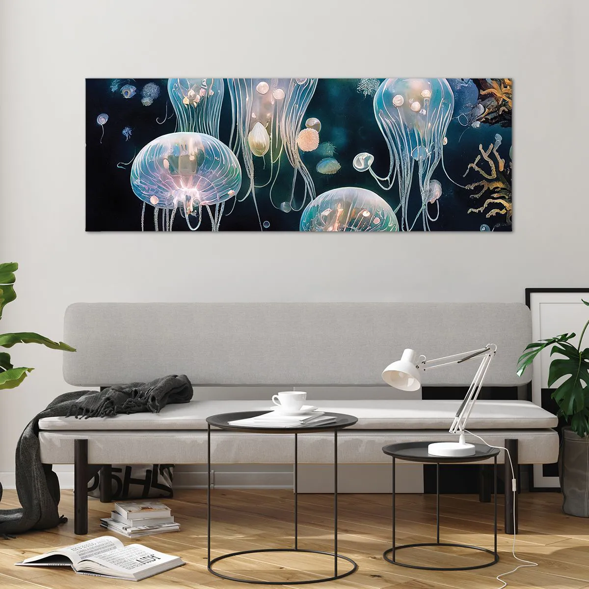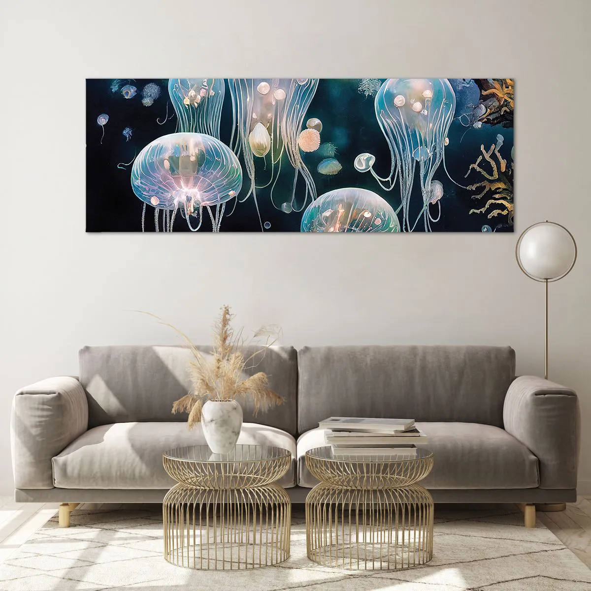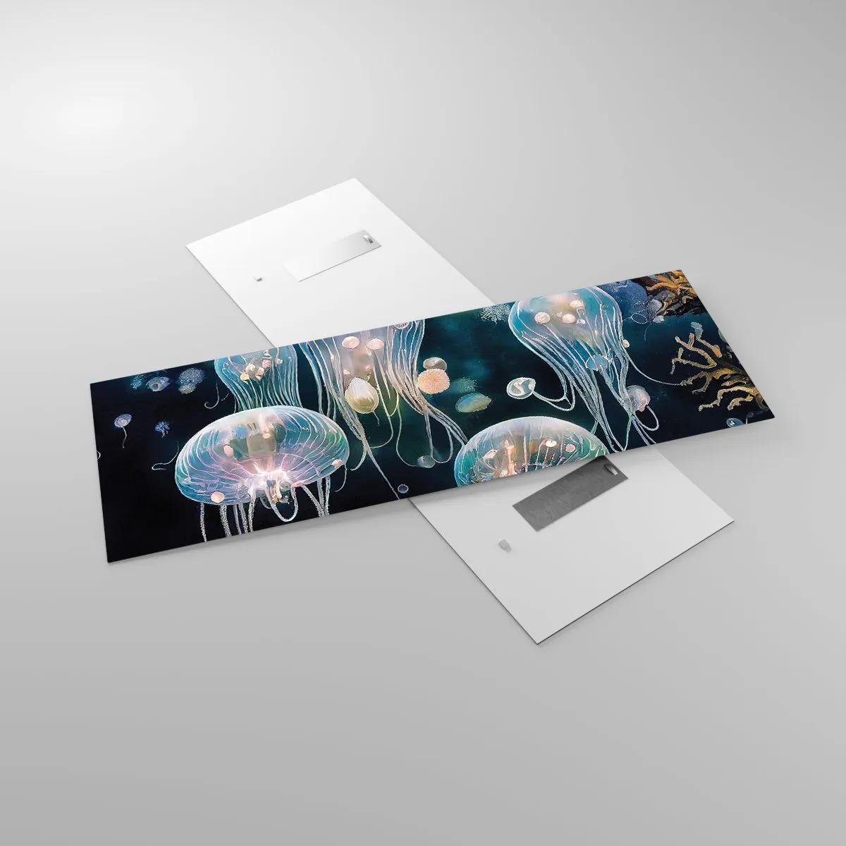 Impression sur verre - Image sur verre - Méduses délicates dans le monde sous-marin - 140x50cm - Ballon sous-marin - Décoration murale moderne pour le salon et la chambre ARTTOR
