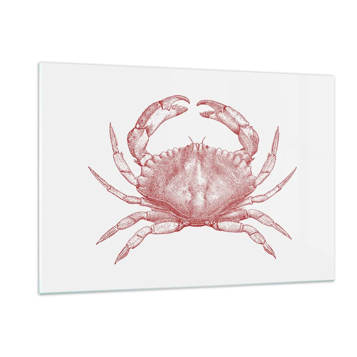 Impression sur verre - Image sur verre - Croquis d'un crabe rouge sur fond clair dans un style rétro - 120x80cm - Le crabe des crabes - Décoration murale moderne pour le salon et la chambre ARTTOR