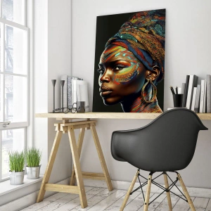 Impression sur verre - Image sur verre - Portrait d'une femme avec une peinture colorée et un turban - 70x50cm - reine africaine - Décoration murale moderne pour le salon et la chambre ARTTOR