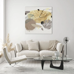 La peinture sur verre est faite sur un verre de 4 mm d'épaisseur. Les bords du verre ont une arête trapézoïdale mate. La tableau est sûr à l'utilisation et prêt à être accroché - il a des crochets en métal attachés à l'arrière du cadre et des entretoises en mousse permettant la régulation uniforme de la distance du tableau au mur.